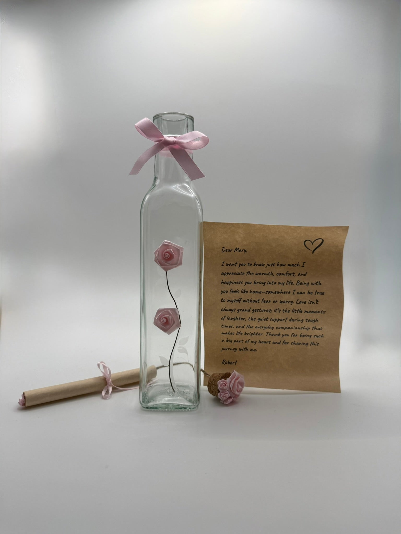 You write the message, and we lovingly package it up for delivery. Heartfelt messages preserved beautifully in ornate glass bottles. An impactful way to show you care.